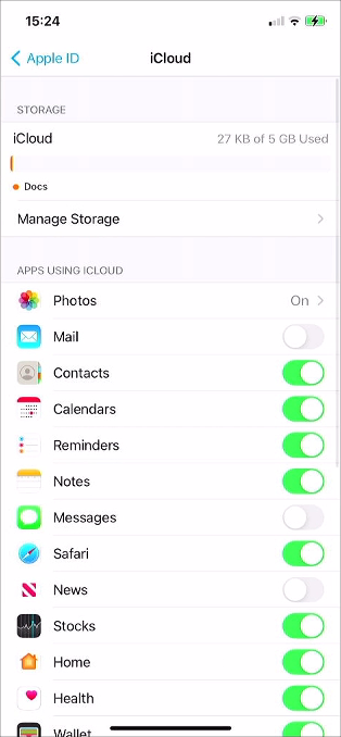 Tap on, ‘iCloud’ to open the related settings.