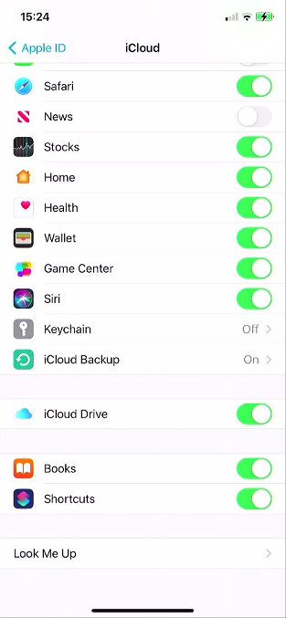 Scroll down in the list to find the option ‘iCloud Backup’.