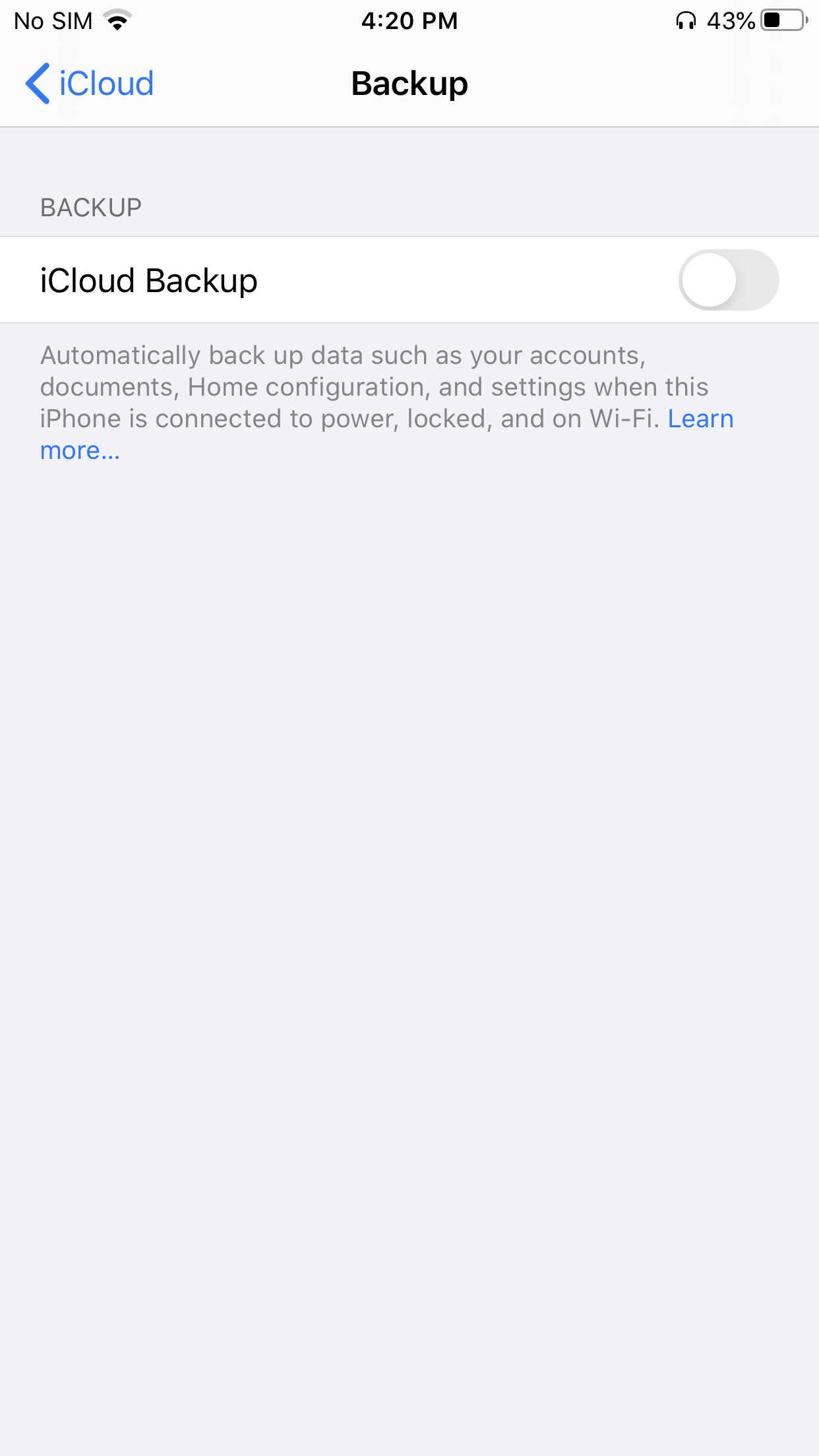 Tap ‘iCloud Backup’ to open the settings.