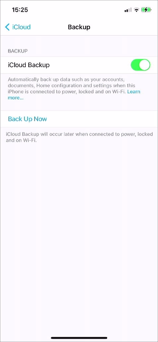 If iCloud Backup is disabled on the device, tap on the toggle button to enable it.