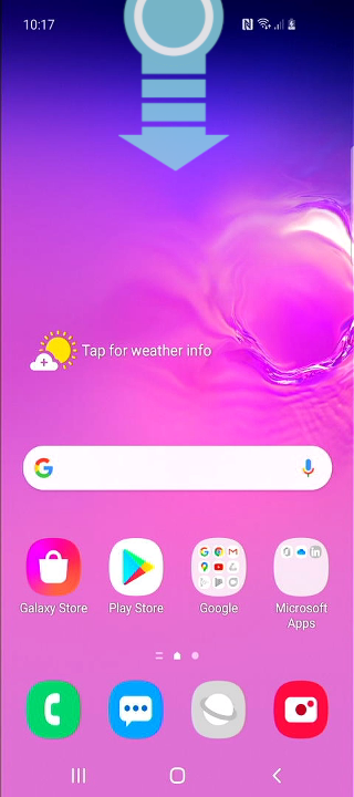 From the home screen, drag down from the top edge of the screen to open the notification page.