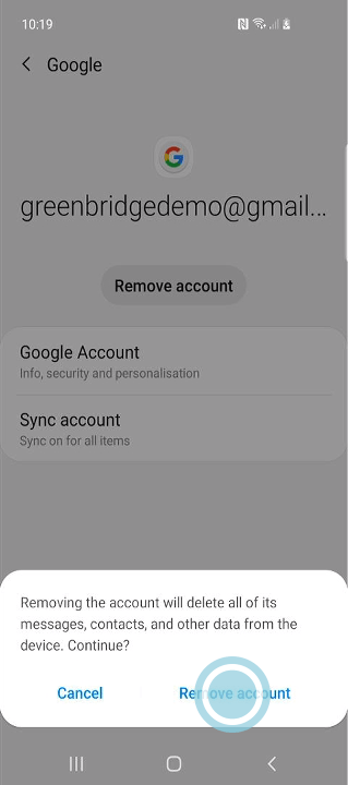 Tap to confirm you wish to remove the account.You may be asked to enter the account password and/or your phone password for security reasons.