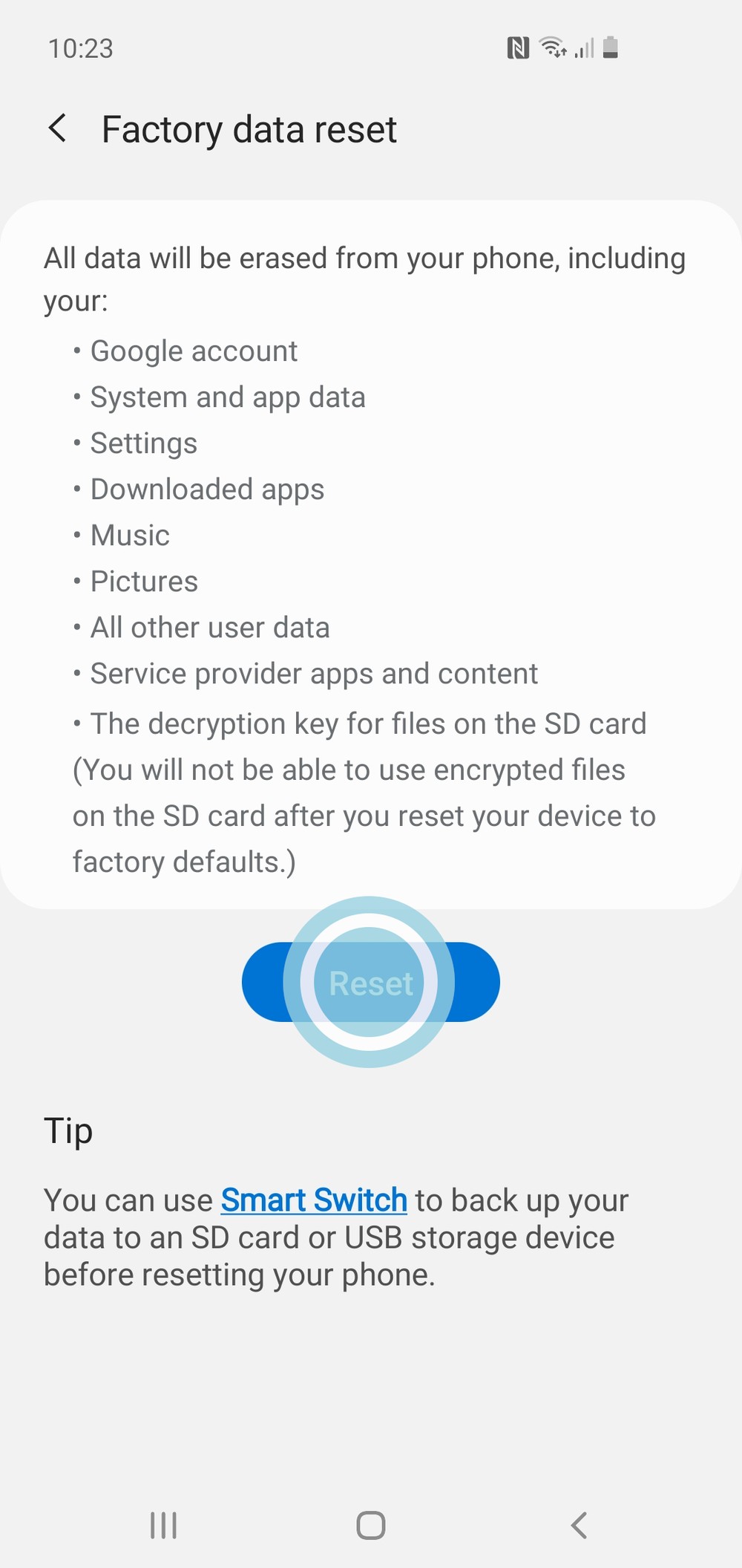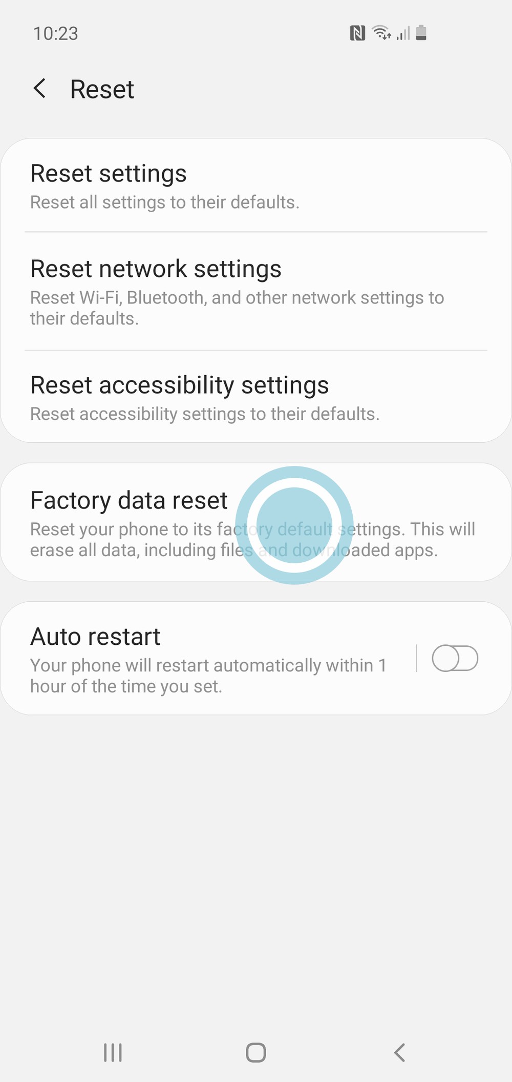 Here are the options to reset the device, to remove all your data tap the ‘Factory data reset’ option.