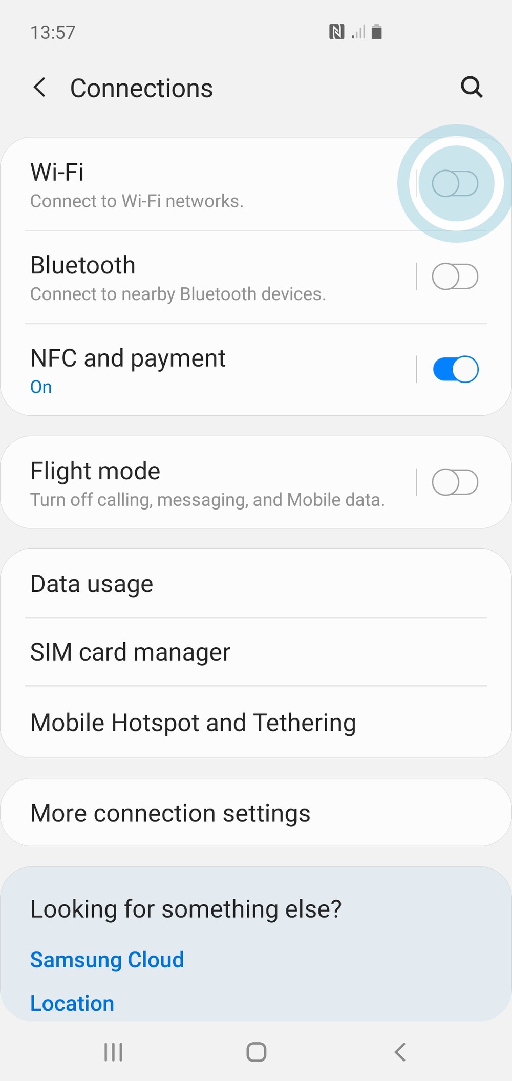 If the ‘Wi-Fi’ is off (Grey) tap the toggle button to turn it on